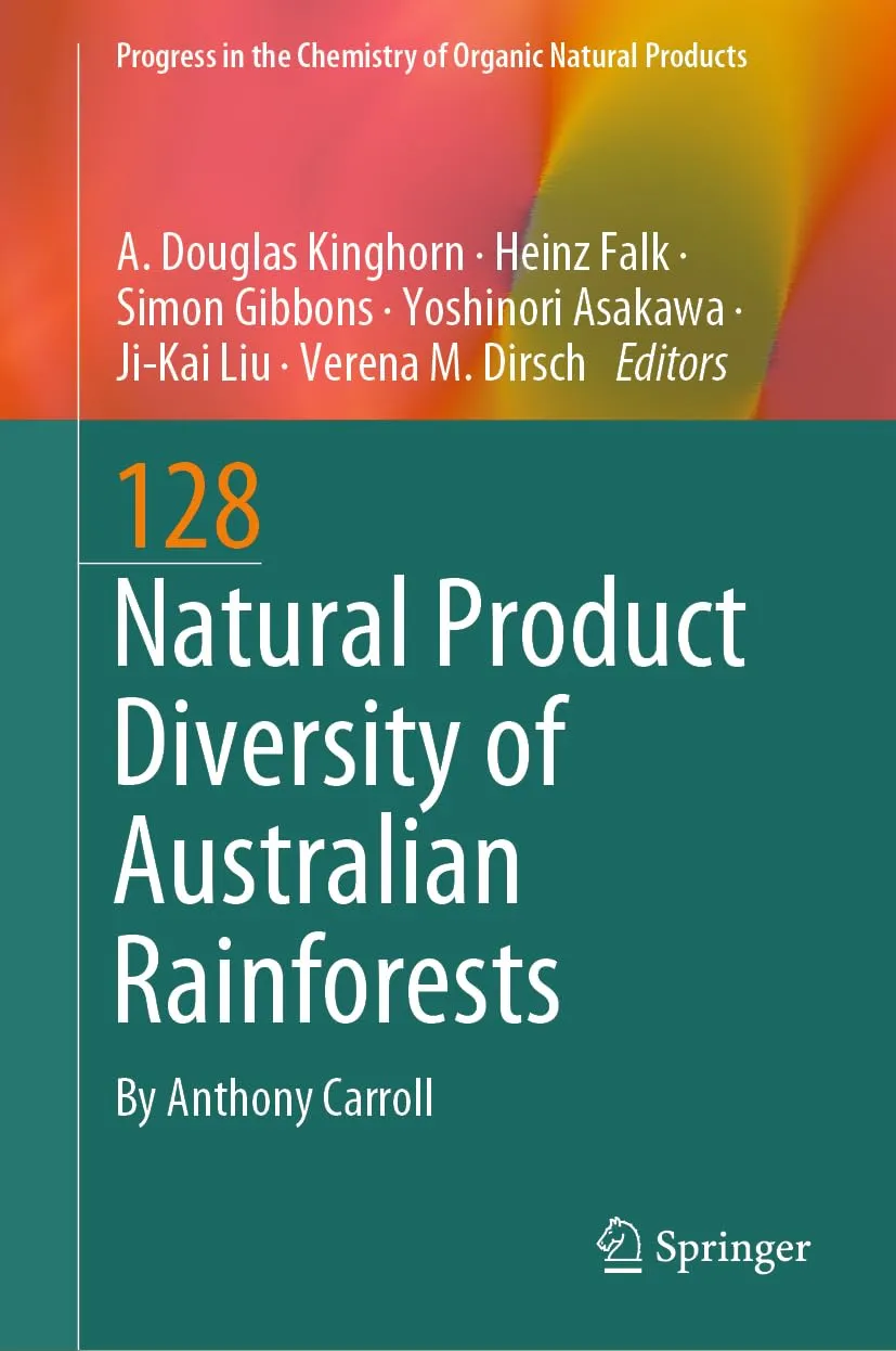 The book reviews the natural product chemistry of Australian rainforest plants, with a particular focus on their fascinating phylogenetic relationships. It discusses the unique flora of Australia, which is of Gondwanan origin, and how this has led to a diverse range of natural products. The text explores the chemical constituents of various plant groups, including those of gymnosperms, basal angiosperms, magnoliids, monocots, and eudicots, with an emphasis on the Australian rainforest species. Key points covered include the historical context of Australian flora, its high level of endemism, and the impact of past climatic changes on rainforest distribution. The book also details the specific phytochemicals found in these plants (about 2,400), such as alkaloids, lignans, and terpenoids, and their biological activities. Overall, this comprehensive volume highlights the importance of Australian rainforests as a rich source of unique natural products and emphasizes the need for further research in this area, in particular given that only approximately 10% of these rainforest species have been investigated so far.