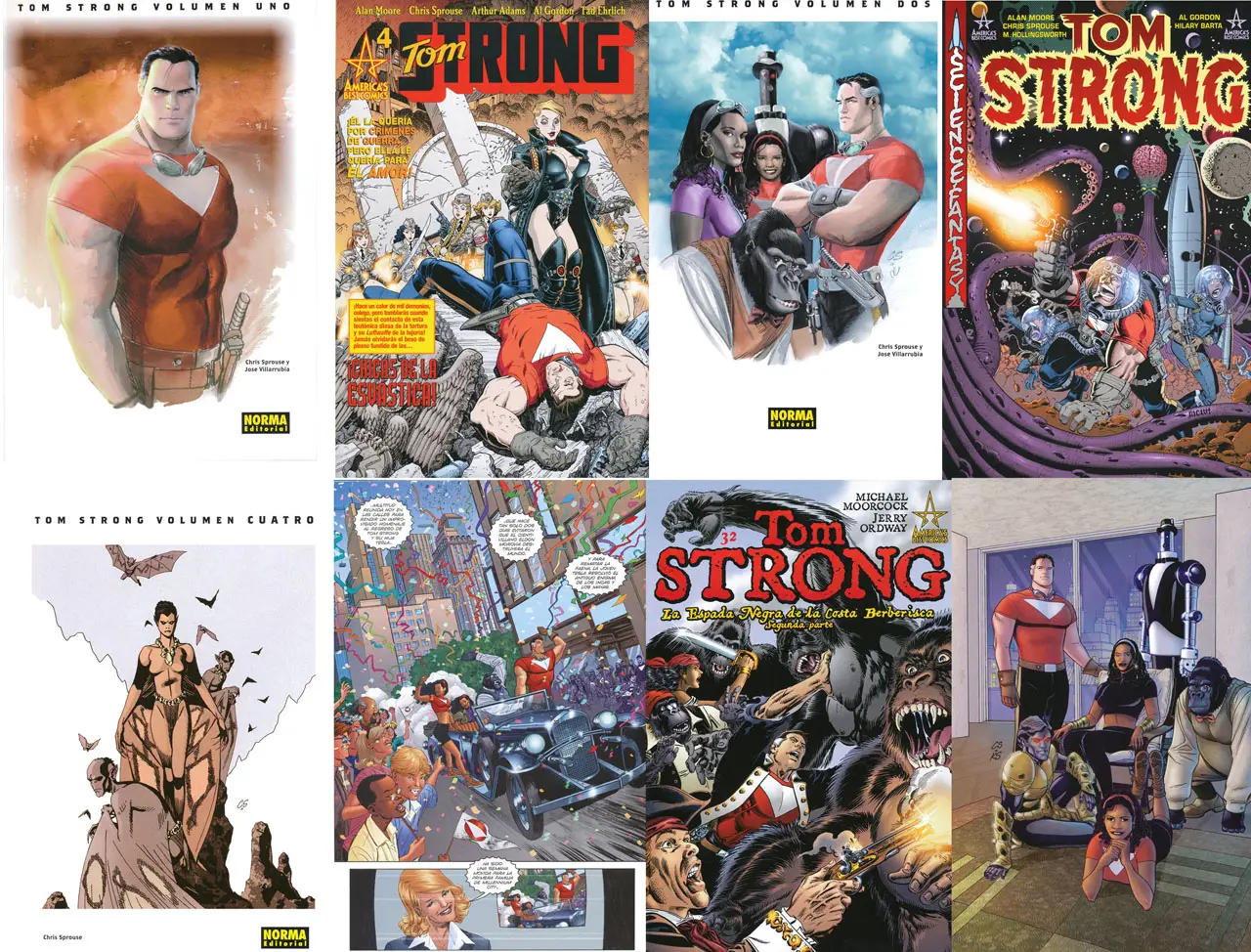 Editorial: Hombres modulares, aztecas, mujeres nazis… todo es posible en esta revisión del pulp más clásico. Tom Strong es una mezcla de Doc Savage, The Phantom y Supermán. La acción se desarrolla en Millenium City a finales del siglo XX, pero el mundo de Tom Strong no es el nuestro, sino el que hubieran podido imaginar H.G. Wells o Julio Verne hace cien años. Zambullámonos, pues, en este maravilloso universo y reencontrémonos con la maravilla y la aventura de un tipo de cómic que hoy en día ya no se hace, si es que alguna vez llegaron a hacerse cómics de este tipo… porque Alan Moore solo hay uno, siempre guarda ases en la manga y tiene más brazos que un venusiano.