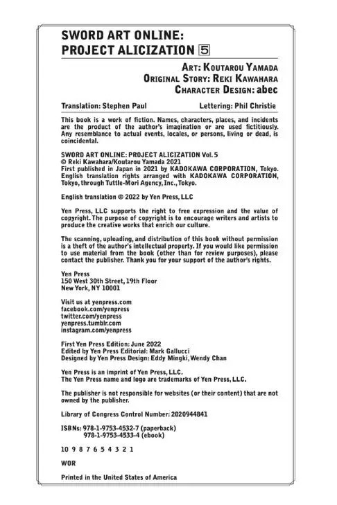 Yen Press-Sword Art Online Project Alicization Vol 05 Manga 2022 Hybrid Comic eBook