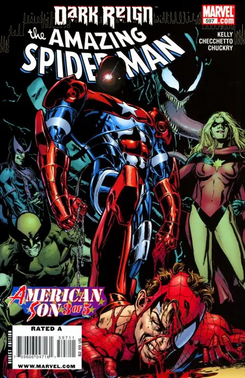 The countdown to the landmark 600th issue of the flagship series of Marvel Comics' most identifiable super-hero is nearing its end as part 3 of the story arc entitled "American Son" continues in this Dark Reign tie-in...