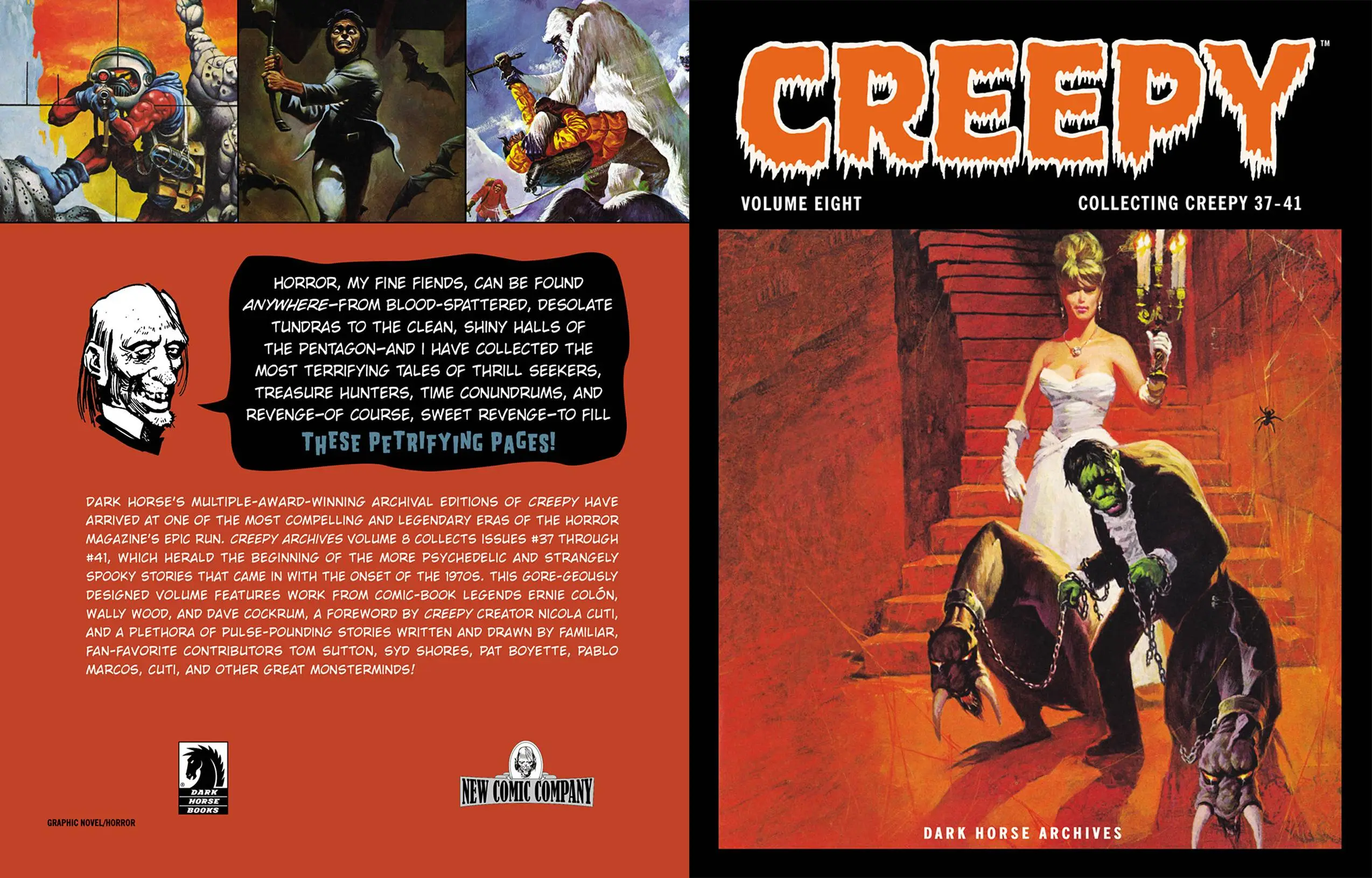 Dark Horse's multiple-award-winning archive editions of Creepy have arrived at one of the most compelling and legendary eras of the horror magazine's epic run. Creepy Archives Volume 8 collects issues #37-#40, which herald the beginning of the more psychedelic and strangely spooky stories that came into vile vogue with the onset of the 1970s. This gore-geously designed volume highlights work from amazing artists such as Basil Gogos, Ernie Colon, Vaughn Bode, Ken Kelly, and others, and stories written by Nicola Cuti, Phil Seuling, Doug Moench, and other great monsterminds.
