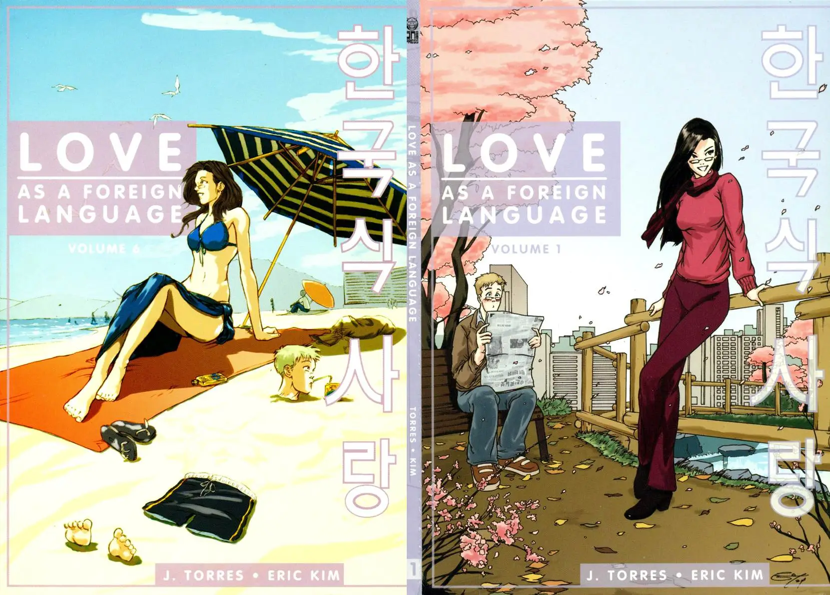 A warm-hearted and funny fish-out-of-water romantic comedy by J. Torres and Eric Kim, Love as a Foreign Language raises the bar for American manga. Joel, a Canadian English-teacher working in a second language school in Korea, has finally had his fill of foreign lands. He’s tried his best to avoid assimilation of Korean culture, stubbornly refusing to learn more than the rudimentary basics of the language, and fearing any unfamiliar foods. His decision to go back to Canada is thwarted, however, when he becomes smitten with a beautiful comics-reading secretary named Hana who works at the second language school. Unfortunately for Joel, his awkwardness at negotiating the cultural currents hinders his relationship with Hana, often with hilarious results. Along the way, Joel discovers that the language of love can be as difficult to learn as any other.