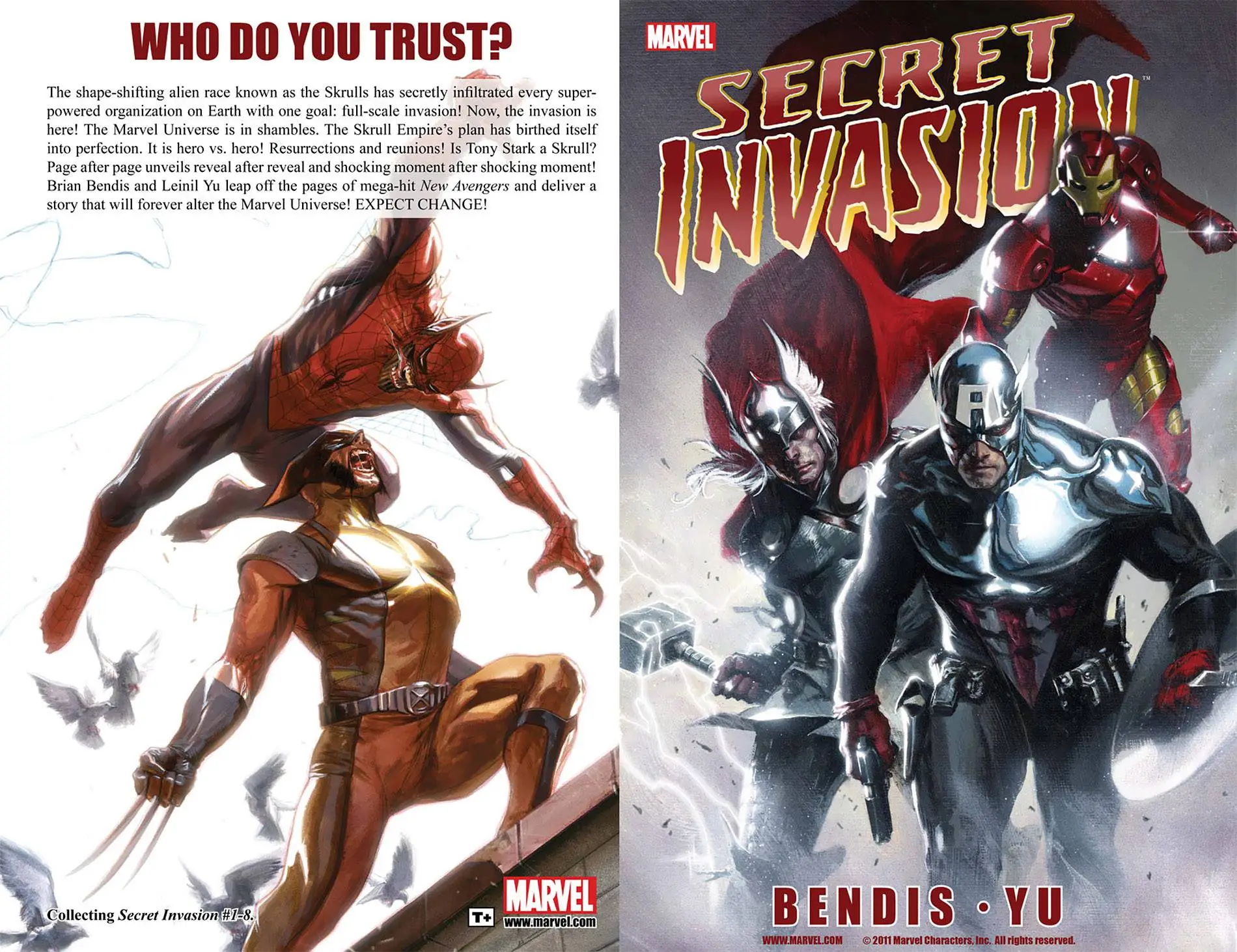 The shape-shifting alien race known as the Skrulls has secretly infiltrated every super-powered organization on Earth with one goal: full-scale invasion! Now, theinvasion is here! The Marvel Universe is in shambles. The Skrull Empire's plan has birthed itself into perfection. It is hero vs. hero! Resurrections and reunions! Is Tony Stark a Skrull? Page after page unveils reveal after reveal and shocking moment after shocking moment! Brian Bendis and Leinil Francis Yu leap off the pages of mega-hit Avengers and deliver a story that will forever alter the Marvel Universe! EXPECT CHANGE! This oversized hardcover comes packed with extras, including the original story pitch, script pages, art concepts/designs and more! A previous New York Times Bestseller! COLLECTING: Secret Invasion #1-8