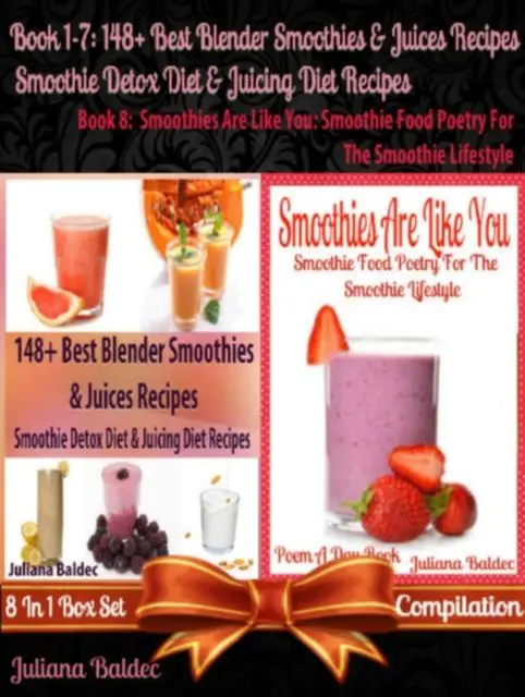 This is a 8 In 1 box set compilation of 8 books. This compilation includes Juliana Baldec's 8 titles: Book 1: 11 Healthy Smoothies Recipes You Wish You Knew Book 2: 21 Amazing Weight Loss Smoothie Recipes Book 3: Clean Eating: 17 Eating Clean & Drinking Clean Recipes With High Speed Blenders Book 4: 16 Blender Recipes For Smoothie Diet & Detox Diet Book 5: Juicing To Lose Weight Book 6: Juicing Recipes For Vitality & Health Book 7: Blender Recipes For The Nutribullet & Breville Juicer With Poun Dropping Results Book 8: Smoothies Are Like You! When Juliana got started with smoothies and juicing, she was able to shed 20 pounds during a period of 2 month. Since then she has been able to keep that weight off. Her secret: She turned these nutritious and satisfying drinks into a way of life. Combining smoothies and a light meal plan has helped her not only lose 20 pounds within 60 days, but she was also been able to get rid of her nasty breathing & Asthma problems at the same time.
