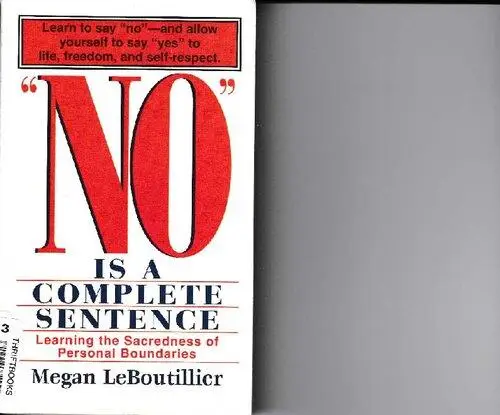 Do you strain to say and do the right thing, and suffer when you fail? Is it hard for you to ask for help...initiate sex...resist unwelcome advances? Do you sometimes feel you almost don't exist? Believe it or not, "NO" is a complete sentence--and it's okay to say it whenever you need to, without fear or guilt. Yet many of us find it hard to say "no" because our personal boundaries have become so eroded that we scarcely know where we stop and other people begin. This sympathetic, sane book helps you to free your inner strength and reclaim the healthy center of your life. Drawing on her own experiences, and those of people struggling with this issue, the author explains what personal boundaries are, how they become damaged, and how we can heal them. She also includes a variety of helpful exercises you can do on your own. Written in a direct and personal style, "NO" IS A COMPLETE SENTENCE will encourage anyone who wants to learn to interact with others in a more equal, productive way.