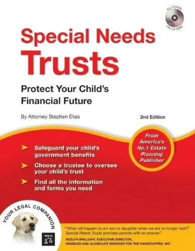 The forms and information you need for peace of mind... If you care for a child or other loved one with a disability, you've no doubt thought about what will happen when you're no longer able to give that care. Fortunately, there's a simple solution to this dilemma -- create a "special needs trust". Special Needs Trusts shows you how to leave any amount of money to your disabled loved one, without jeopardizing government benefits. It provides plain-English information and forms that let you create a special needs trust by modifying your will or living trust document. Funds in a special needs trust can make a big difference in quality of life by paying for annual independent check-ups, personal care attendant or escort, vehicles and transportation, insurance, rehabilitation, essential dietary needs, materials for recreation, trips or vacations, entertainment, athletic training or competitions and much more! Special Needs Trusts also provides a formal letter to the trustee, which explains this very important role, and a personal letter to the trustee, which provides information about your loved one. It includes the forms you need as tear-outs and on CD-ROM.