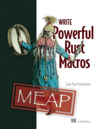 Write Powerful Rust Macros teaches you how to write, test, debug, and publish macros for Rust. It’s perfect for Rust practitioners who want to master this powerful development technique. In this unique book, you’ll explore Rust macros through interesting and engaging examples, including automatically generating a ‘builder’ and composing a DSL for writing Infrastructure as Code.