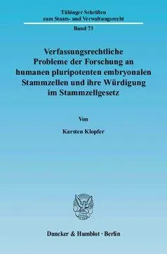 Verfassungsrechtliche Probleme der Forschung an humanen pluripotenten embryonalen Stammzellen und ihre Würdigung im Stammzellgesetz By Klopfer, Karsten
