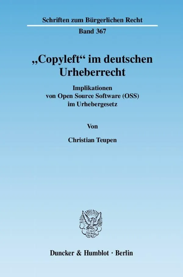 »Copyleft« im deutschen Urheberrecht: Implikationen von Open Source Software (OSS) im Urhebergesetz By Teupen, Christian