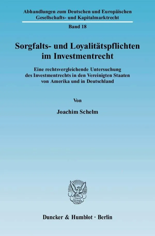 Sorgfalts- und Loyalitätspflichten im Investmentrecht: Eine rechtsvergleichende Untersuchung des Investmentrechts in den Vereinigten Staaten von Amerika und in Deutschland By Schelm, Joachim