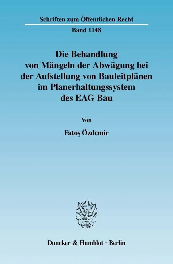 Die Behandlung von Mängeln der Abwägung bei der Aufstellung von Bauleitplänen im Planerhaltungssystem des EAG Bau By Özdemir, Fatoş