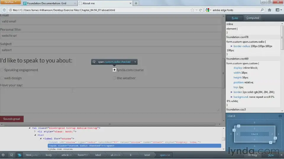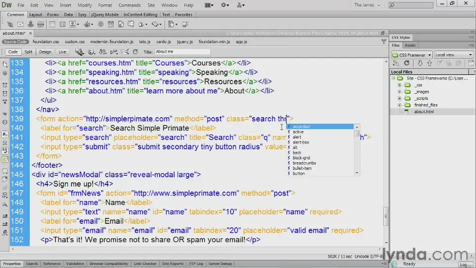 Have you wondered if using a CSS framework will speed up your site development? In this course, senior author James Williamson introduces the types of frameworks available—including the most popular choices among working web developers—and provides an honest assessment of the pros and cons to using a framework. He guides you through downloading a framework, setting up a directory structure, and building a framework-based site, such as structuring the HTML and working with forms. A separate chapter explores layout grids, often included with CSS frameworks, which provide a simple system for laying out page content.