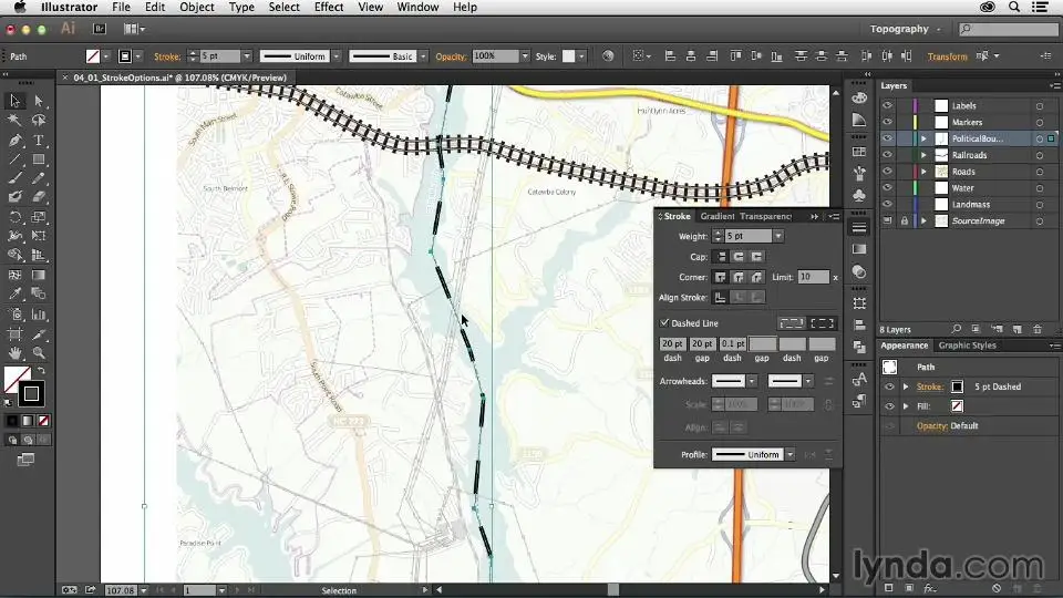 Learn to create a custom map that provides clean and accurate directions and points out the landmarks you want to highlight. In this course, William Everhart shows how to build a road map in Adobe Illustrator, which you can then print or embed on a website. Discover how to obtain a source image; trace the map; draw and style different roads, landmarks, and basic geographic features; and label your map with type and symbols. Finally, learn to add turn-by-turn directions and prepare your map for print or sharing online.