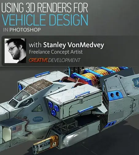 In this tutorial, we will be using a basic 3D Render as a base to paint over in Photoshop. We will explore how to move from thumbnailing the basic shape of a vehicle in a 3D package, rendering it out, and then adding a combination of photo textures and painted details in Photoshop to produce a complete concept illustration.