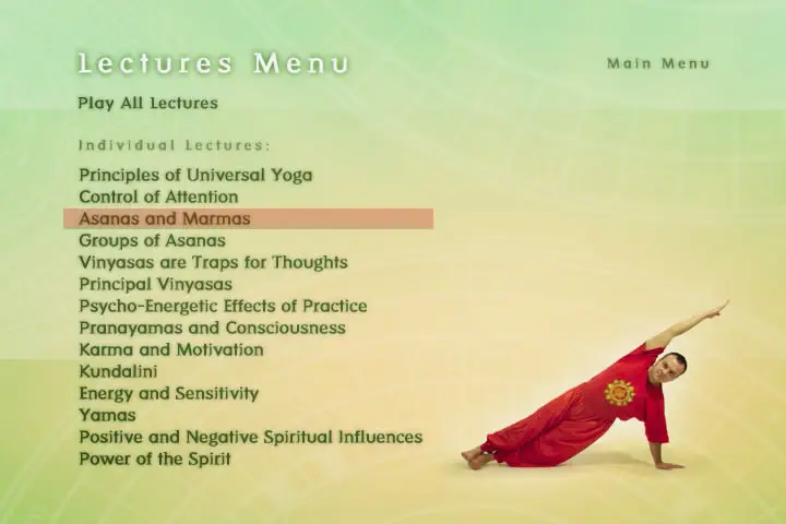 This DVD features two hours of edited lectures on the theory of Universal Yoga as well as a special 2-hour practice designed just for this DVD that includes asana, pranayama, yasas and meditation.