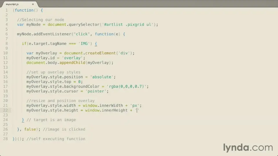 Creating and styling an overlay with JavaScript 4m 39s