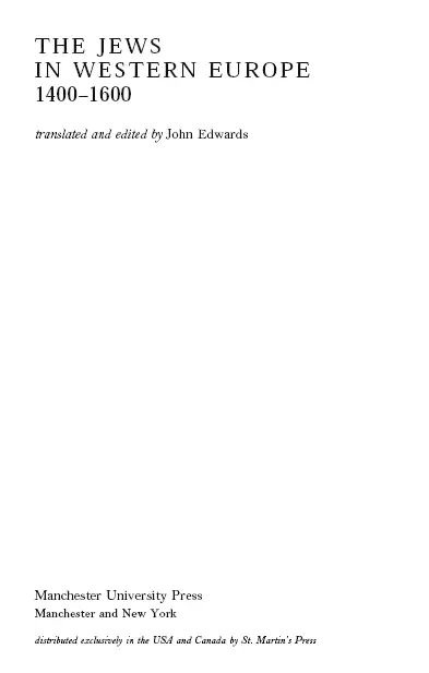 John Edwards, John Edwards - The Jews in Western Europe 1400-1600 (Manchester Medieval Sources)