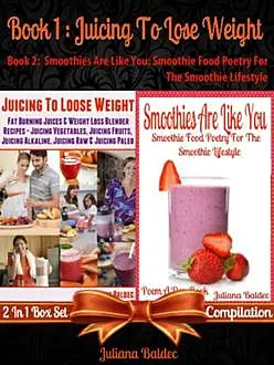 This is a 2 In 1 box set compilation of 2 books. This compilation includes Juliana Baldec's 2 titles: Book 1: Juicing To Lose Weight Book 2: Smoothies Are Just Like You! Book 1: When Juliana got started with smoothies, she was able to shed 20 pounds during a period of 2 month. Since then she has been able to keep that weight off. Her secret: She turned these nutritious & satisfying drinks into a way of life. Combining smoothies, juices, her secret morning elixir (included) & a light meal plan has helped her not only lose 20 pounds within 60 days, but she was also been able to get rid of her nasty breathing & Asthma problems at the same time. People who have achieved similar results like Baldec by consuming smoothies, juices and an apple cider vinegar honey morning elixir in combination with a light daily meal plan all agree. This is the most natural way to nourish your body & brain while getting amazing results. Inside you will find the same recipes that helped Juliana achieve these results: * Green Beauty Juice * Citrus Immunity Booster * Everyday Go To Juice * Beet Strawberry Carrot Empowerer and many more… you can choose from 29 scrumptious tasting recipes! Book 2: “Smoothies Are Like You” is an extremely fun, quick & easy to read little rhyming book about the amazing Smoothie Lifestyle. It is for everyone no matter if you are looking for information about the Smoothie diet for beginners or if you are an advanced Smoothie consumer. This inspirational smoothie poem a day book will cheer you up and keep you motivated to stick to this happy & healthy smoothie lifestyle in a fun, inspirational and rhyming way! In the end you'll know exactly why Smoothies are like you! Live a happy & healthy lifestyle and double your life today…