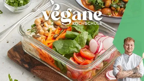 Meal prep is a smart solution for anyone who wants to eat a healthy, balanced diet without spending a lot of time in the kitchen every day. By preparing meals for several days in advance, you not only save time but also money. During the week, you no longer have to worry about what to eat. This reduces the risk of resorting to an unhealthy ready meal. What's more, meal prep helps to prevent food waste, because you only buy the ingredients you actually need. Our chef Jannis shows you a variety of ways to achieve all this. Meal prep is the key to a stress-free, healthy diet.The goal of this course: for you to have a healthy, daily breakfast, lunch and dinner.Highlights of the Meal Prep Cooking Course:· 11 instructional videos with professional chef Jannis, who shows you how to plan and prepare tasty and healthy meals for the whole week.· In the first videos, Jannis shows you how to prepare two varied dishes using a few basic ingredients. This gives you 10 recipes that you can use for your own menu plan.· In three videos, you will learn about dishes that are ideal for freezing, so you always have a quick, healthy, hot meal at hand.· In the last two videos, Jannis shows you two delicious breakfast dishes that you can prepare in no time and then store in the fridge.· You will receive a certificate after successfully passing the online final test (10 questions).Lesson 1: IntroductionWelcome to the Meal Prep course at our Vegan Cooking School. Chef Jannis will explain how the course is structured and give you an introduction to the special features and advantages of meal prep. He will also show you what your menu plan could look like for the whole week and what you should pay attention to when planning it.Lesson 2 to 4: First day of cookingThe course is structured so that you prepare meals two days a week. On the first day of cooking, you prepare a lunch and an evening meal for three days. This is easy to do, as two of the dishes consist of similar basic ingredients.Lesson 5 to 6: Second day of cookingOn the second day of cooking, you prepare another four meals – your lunch and dinner for two more days of the week.Lessons 7 to 9: Frozen MealsJannis also shows you three delicious dishes that you can prepare in large quantities and then simply freeze.Lesson 10 to 11: BreakfastAnd of course, breakfast is an absolute must. These two recipes are easy to make and you can combine them in different ways every time.Our Gourmet Chef and Vegan Pro – Jannis SiegenthalerYour head chef is Jannis Siegenthaler, and he will teach you all there is to know about healthy vegan cuisine. He will show you how to professionally cook, fry and bake vegan food – whether it's low carb, gluten-free or just normal. The main thing is that it's healthy and vegan and – except for recipes for special occasions – also suitable for everyday cooking! Jannis is a chef with heart and soul. A few years ago, when he was still working in a restaurant, he and his team even received two Michelin stars. A kitchen only receives such an honour if it meets very specific criteria. One of which is all the dishes on the menu must taste first-class and be exceptionally well presented.