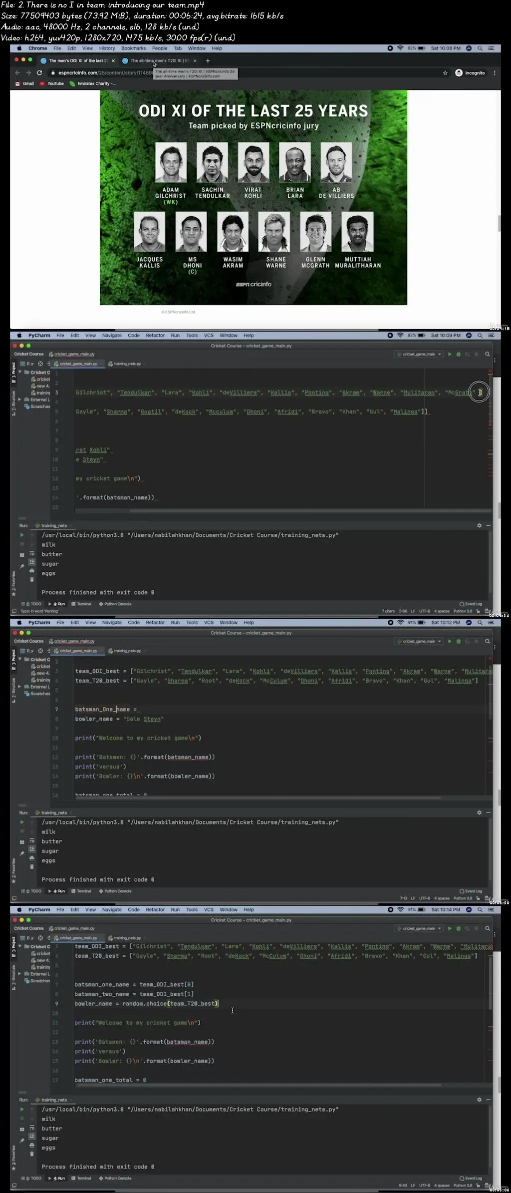 Learn to code with this beginner Python programming course featuring 100% cricket-related examples and projects.