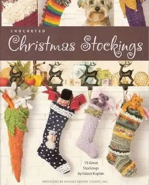 Using Grace Kaplan's variations on a simple stocking pattern, you can crochet fabulous Christmas stockings for everyone on your gift list. Different yarn sizes, weights, and textures change the look of the basic single crochet design, giving each stocking its own personality and flair. Added embellishments – appliqués, beads, bells, and bows – offer more options for creating unique stockings that everyone will love. 15 stockings: Baby's First Stocking, Furry Stocking, Snowy Days, Shaggy Chic, Waste Not Want Not, Poinsettias, Sherpa Stocking, Jeweled Stocking, Baby Rosebuds, Jingle All the Way, Christmas Snowflakes, Merry Christmas Mrs. Claus, Joy to the World, Court Jester, and Carrot Stocking.