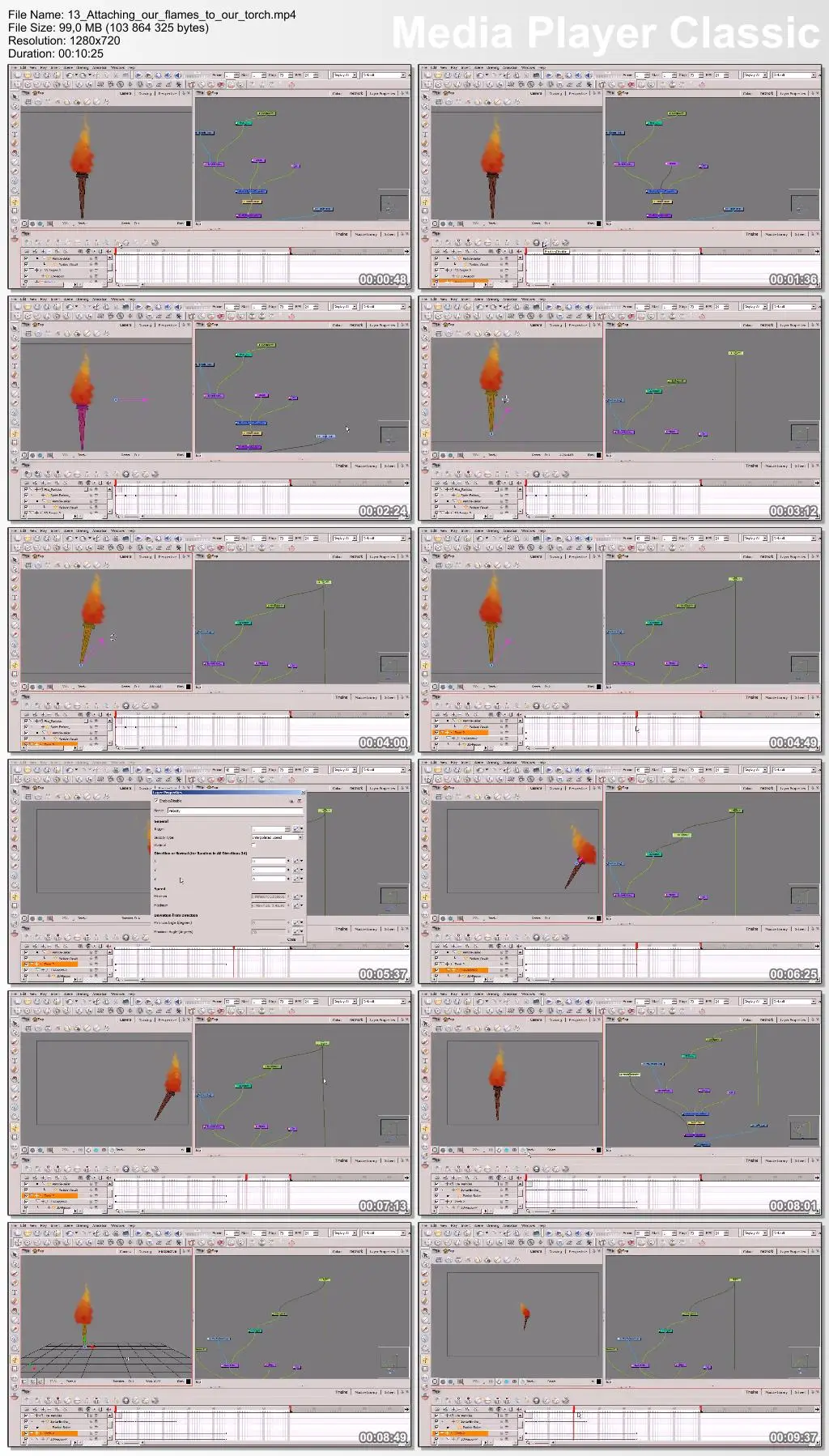 Finally, we'll finish by attaching our flames to a torch by setting up a proper hierarchy arrangement in our network view.