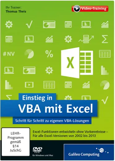Sie möchten eigene Funktionen für Excel entwickeln? In diesem Training sehen Sie direkt am Bildschirm, wie es geht. Thomas Theis vermittelt Ihnen besonders anschaulich die Grundlagen der VBA-Programmierung. Anhand typischer Anwendungsbeispiele, die Sie ganz leicht an Ihre Bedürfnisse anpassen können, lernen Sie besonders schnell und anschaulich, wie Sie eigene Makros schreiben.