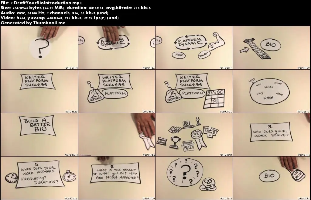 I will walk you through 30-minutes of video instruction and then you can use the six downloadable worksheets that come with this class any time you like to build a bio that will set you apart from the crowd.