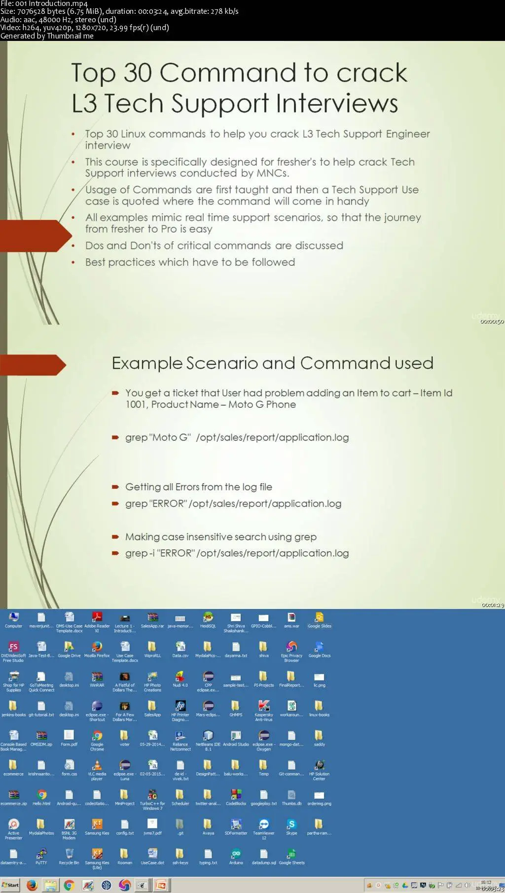 Linux Top 30 commands is specifically designed keeping in mind fresh graduates who would like to pursue a career as Tech Support Engineer. A fresher candidate will be overwhelmed by humongous command library of Linux and this course will make it easy to relate to linux commands and their usage in real life scenarios. The command usage is explained taking realistic scenarios there by giving a peek into the work routine of a Tech Support Engineer.