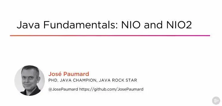 Java NIO and NIO2 have been added to the JDK to add more functionalities offered by the file systems that aren't used by Java I/O. In this course, Java Fundamentals: NIO and NIO2, you'll learn how to use Java NIO to read and write data efficiently in bulk mode, and asynchronously to handle more operations simultaneously. First, you'll explore the fundamental objects of this API, including Buffer, Channel, and Selector to precisely set up performant I/O applications for disk or network access. Next, you'll discover how to efficiently navigate through very large directory structures, and how to trigger actions on directory events plugged on the native capabilities of the file systems for better performance. Finally, you'll delve into all of these APIs in action in extended live coding sessions, showing you how to properly use the patterns and how to deal with errors. By the end of this course, you'll have the necessary knowledge to design and create robust and performant I/O systems by following the right patterns, whether you want to access file systems or networks.