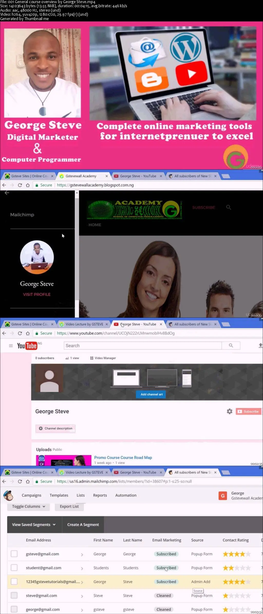 Learn step by step guide on complete design of WordPress, Blog, YouTube management and Email growth using Mailchimp