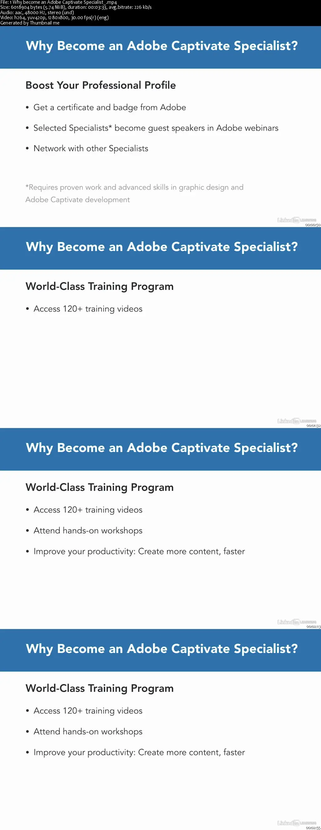 Successful completion of the Adobe Captivate Specialist certificate program shows your colleagues (and potential employers) that you’ve mastered the tools, techniques, and industry standards for creating professional-grade elearning. In this course, instructor Pooja Jaisingh lays out the benefits of this program, as well as what it takes to become an Adobe Captivate Specialist. Pooja covers the program’s scope and objectives, as well as the different topics you need to master to ace the final assessment. Upon wrapping up this course, you’ll have the information you need to determine whether the Adobe Captivate Specialist certificate program is right for you.