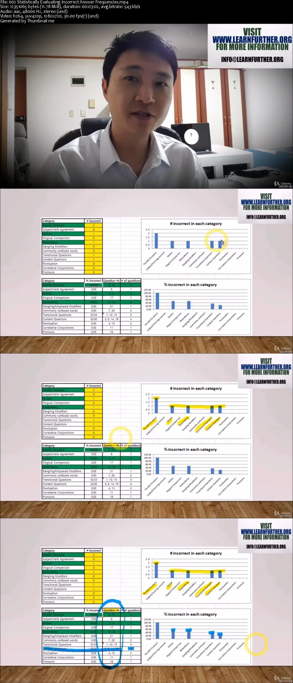 Then the inaccuracy frequency of each question category is graphically represented using pre-formulated excel charts.