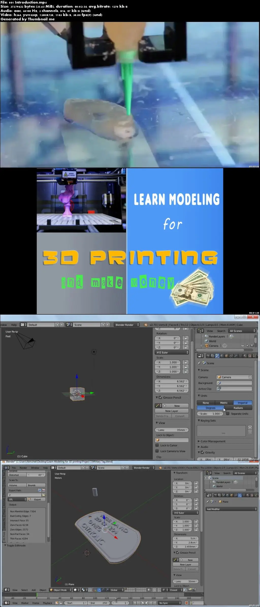 You will learn modeling for 3d printing from scratch to finish, this in not any other 3d modeling course which will just give you an idea about how 3d modeling is done. And then leave you midway without actually demonstrating on how to prepare a 3d model for 3d printing