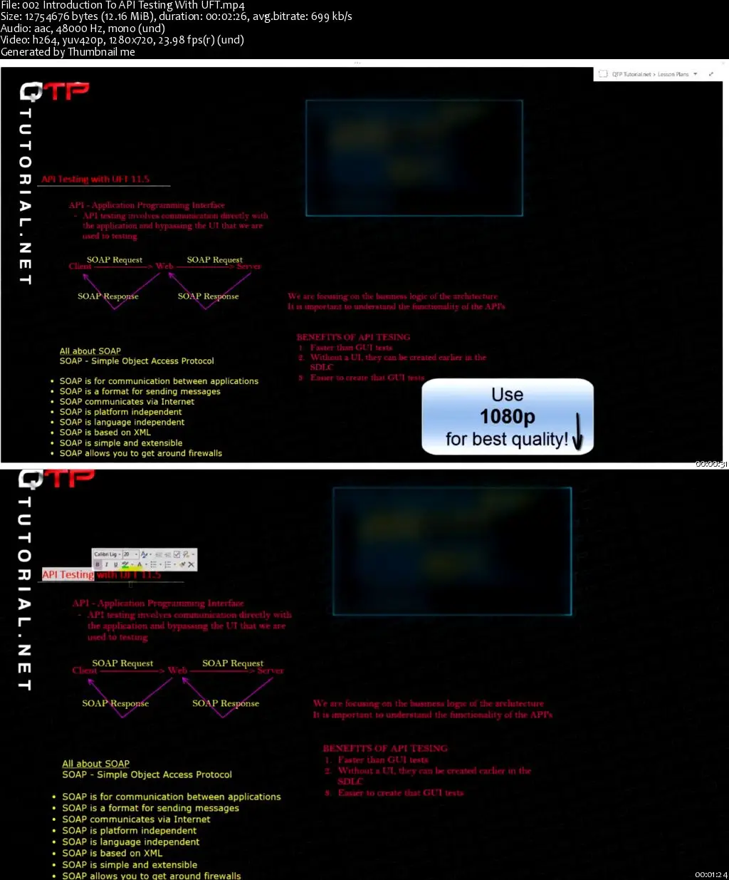 This is the most comprehensive API Testing tutorial with Unified Functional Testing(UFT) on the web. The course will teach you EVERYTHING that you need to know for testing APIs in an automated fashion. GUARANTEED or your money back!