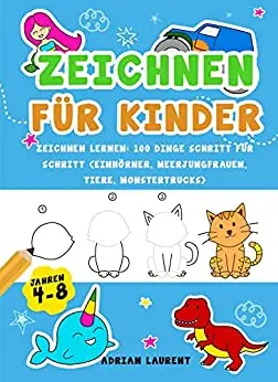 Zeichnen für Kinder im Alter von 4-8 Jahren: Zeichnen lernen: 100 Dinge Schritt für Schritt (Einhörner, Meerjungfrauen, Tiere, Monstertrucks) (German Edition) by Adrian Laurent