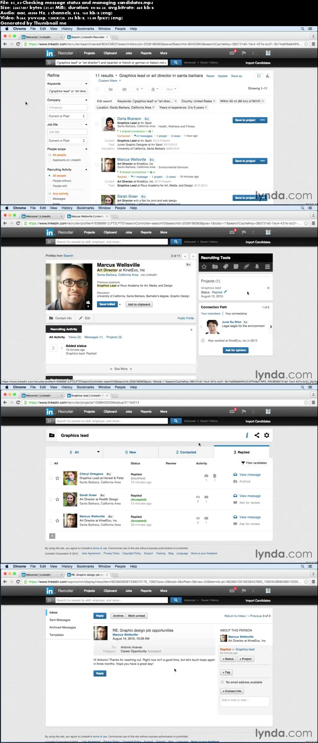 Find the candidates you need with LinkedIn Recruiter, the industry-leading recruiting platform. Learn how to search for candidates, create projects and organize potential candidates, and effectively contact candidates. You'll also learn how to post jobs and assess the effectiveness of your recruiting efforts.