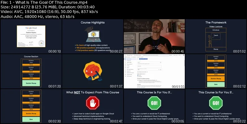 Comprehensive Preparation For The GCP Cloud Digital Leader Exam: 6h High-Quality Video Content + A Total Of 253 Questions & Explanations.