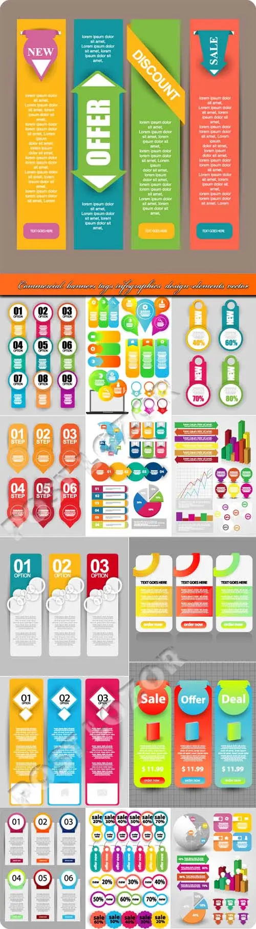 Commercial banners tags infographics design elements vector