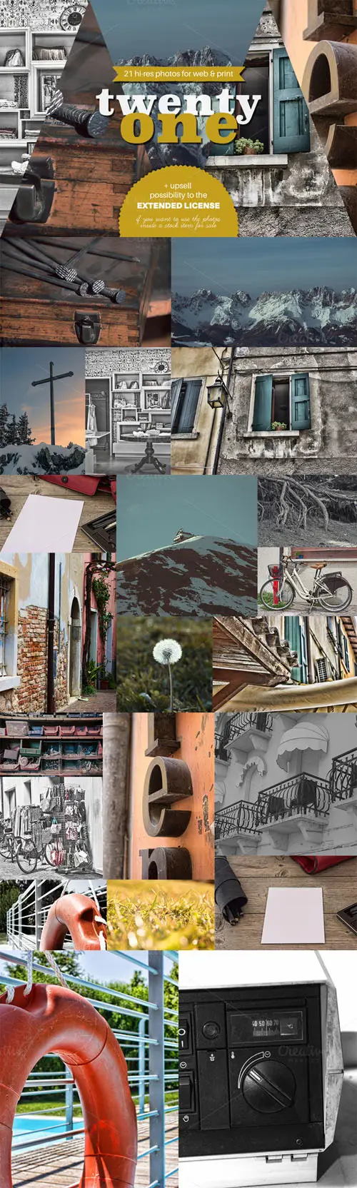 Creativemarket - 21 Photo Pack Vol 01 + Upsell Chance 21 JPG | | Dimensions: long side min. 3648 px (most of them are 5000 px and above) | 300 DPI | 269 Mb