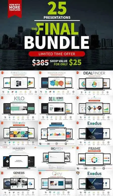 CreativeMarket - The Final Bundle 25 PresentationsPPTX, PPT, KEY | 1920x1080 | 1.37 GB