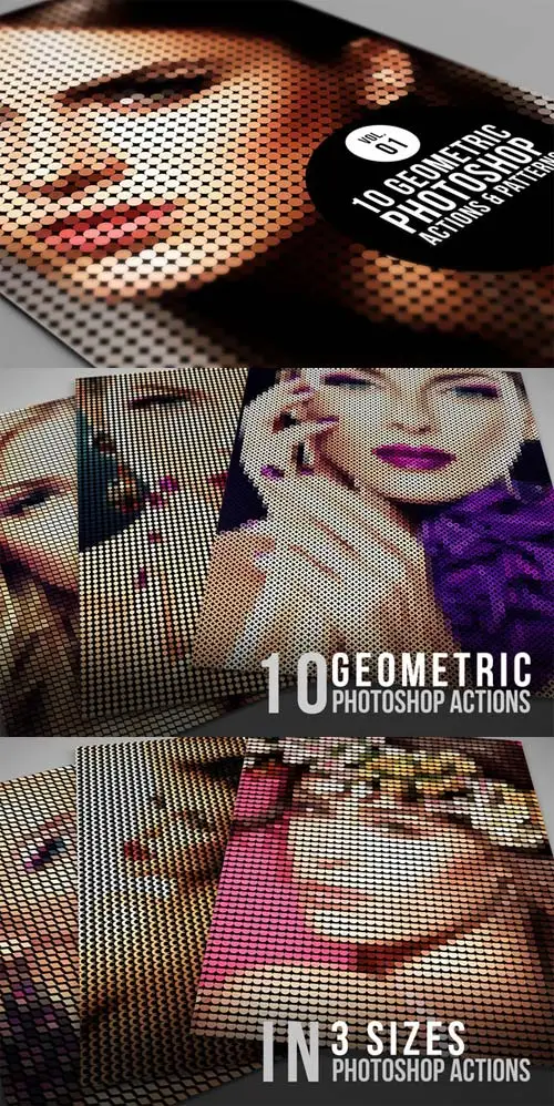 10 creative geometric photoshop actions (.atn adobe photoshop file) and photoshop patterns (*.pat file) with instructions how to instal and use this cool photo actions.