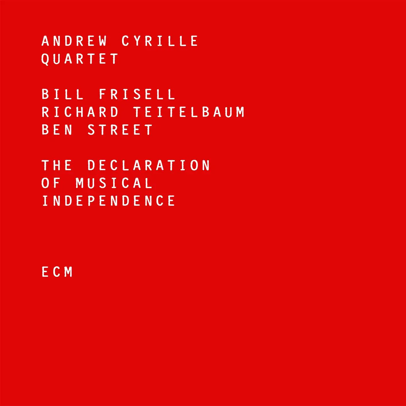 The great avant-jazz drummer Andrew Cyrille whose associations have ranged from a long, vintage collaboration with Cecil Taylor to co-leading current all-star collective Trio 3 with Oliver Lake and Reggie Workman makes his ECM debut as bandleader on "The Declaration Of Musical Independence" and what a band it is! Guitarist Bill Frisell, keyboardist Richard Teitelbaum and double bassist Ben Street are perfectly in synch with Cyrille throughout this set that opens with a Coltrane cover (Coltrane Time) but is otherwise all-original, including three pieces composed by the entire quartet in the studio.