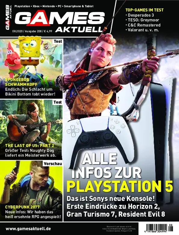 Die Games Aktuell 08/2020 ist da, mit Titelthema "Reveal der Playstation 5", außerdem mit Vorschauen unter anderem zu Cyberpunk 2077, Dirt 5, Humankind und Project Cars 3. Im Testteil warten zum Beispiel The Last of Us: Part 2, Valorant, Desperados 3 und Command & Conquer Remastered auf euch, zudem gibt es spannende Reportagen zu 20 Jahren Diablo 2, und dem Retro-Klassiker Lands of Lore. Viel Spaß beim Lesen!