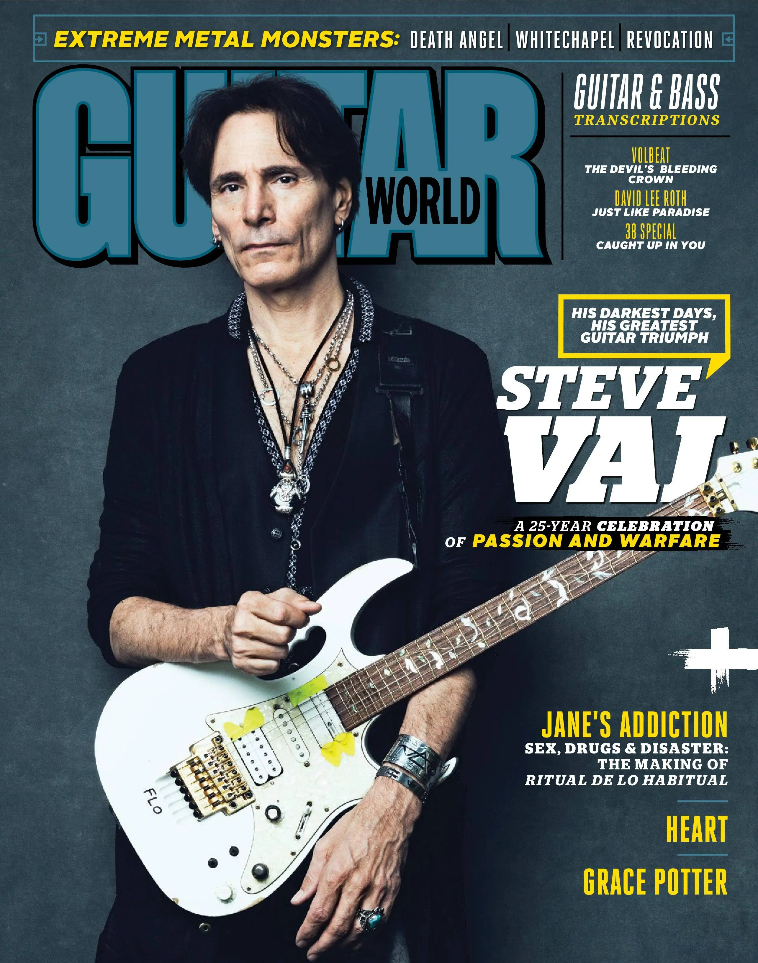 In this issue: TUNE-UPS Heart, Whitechapel, Grace Potter,Revocation and Dear Guitar Hero with Death Angel’s Rob Cavestany, YAMAHA HISTORY A journey through the Japanese company’s storied past to discover how it became one of the preeminent guitar manufacturers of all time, JAMES VALENTINE The Maroon 5 guitarist unveils his latest passion project: his new Ernie Ball Music Man signature guitar and much more…