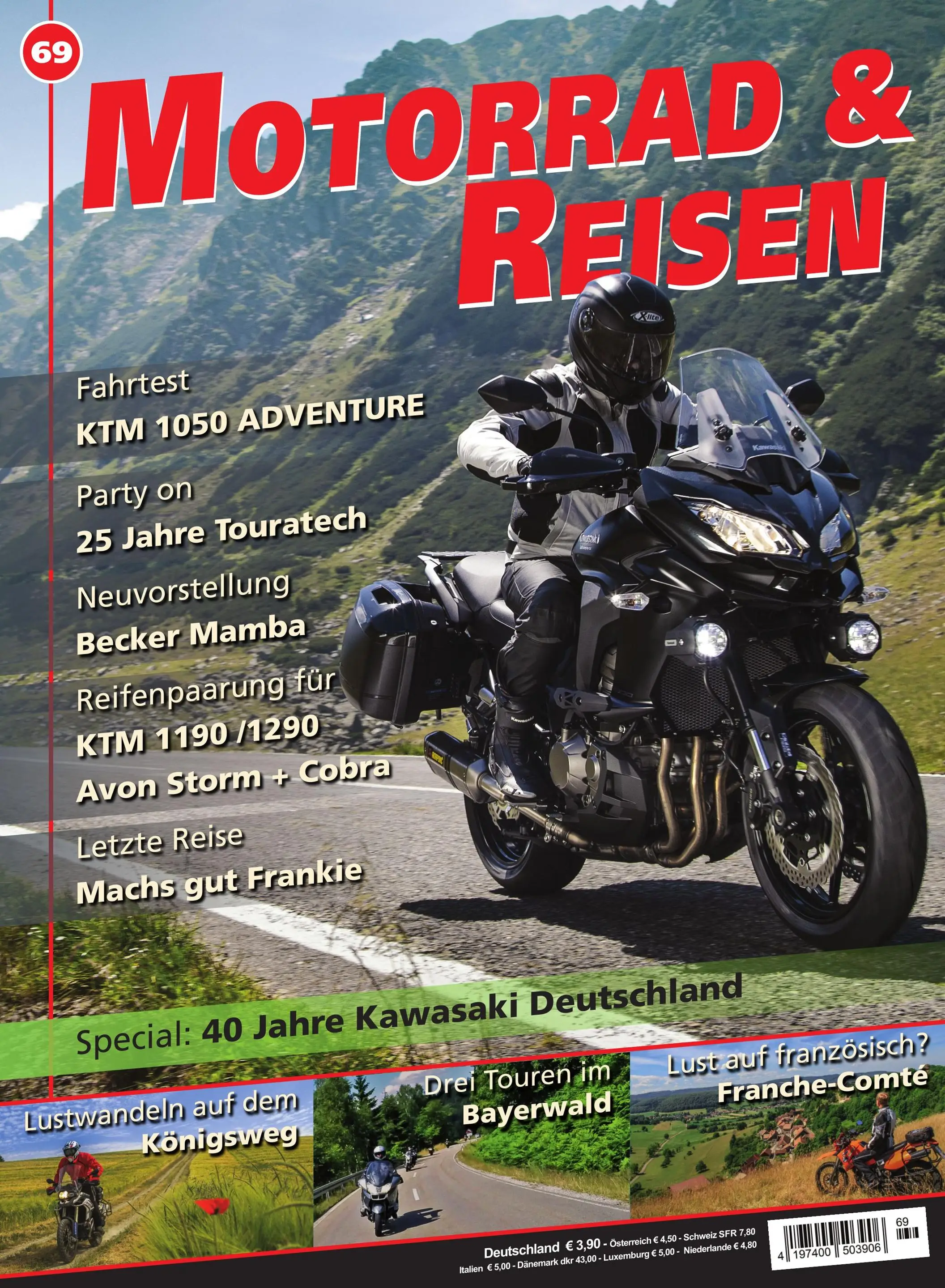Motorrad & Reisen – das führende Magazine für alle reisefreudigen Motorrad- und Tourenfahrer ist seit mittlerweile über 10 Jahren für Euch in Europa und der Welt unterwegs, um die besten Strecken zu erkunden. Egal ob Strecken vor der Haustür in Harz, Sauerland oder anderen Regionen Deutschlands oder Traumziel in den Alpen, den Dolomiten oder in Übersee. Neben Informationen zu Reisen, GPS_Daten und Tourentipps versorgen wir Euch mit einer großen Anzahl an Fahrberichten und Produkttest aller bekannten Hersteller, wie BMW, Yamaha, Kawasaki, Honda, KTM, Harley-Davidson, Schuberth, Givi, und vielen mehr. Mit der Readly Magazin Flatrate können Sie alle zwei Monate direkt im ePaper, egal wo Sie gerade sind, auf unser Archiv zugreifen. Ein Muss für alle Motoradfans. Jetzt Motorrad & Reisen bei Readly lesen.
