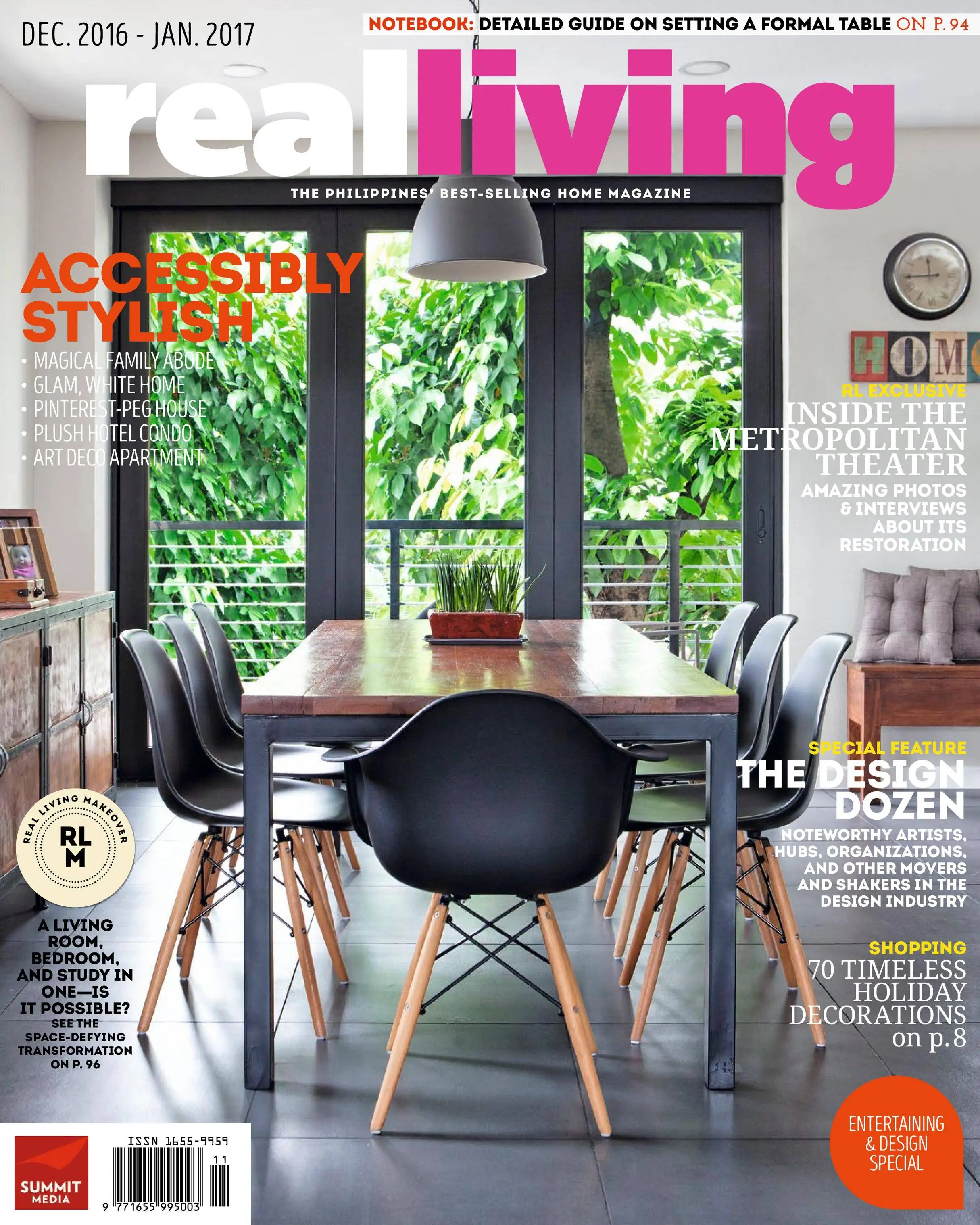 Real Living’s December-January 2016-17 issue is all about new beginnings. In this amazing issue, we feature our first ever Design Dozen—a roundup of brands, artists, and organizations who will be the movers and shakers in the design industry next year. In the RL Notebook, we teach you how to set the perfect party table, and in Shopping, we show you timeless holiday décor. And in our exclusive feature, we give you a sneak peek into the Art Deco heritage building, the Metropolitan Theater.