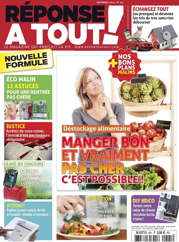 Le conseiller du quotidien. Reponse a Tout s'est donné pour objectif d'aider les familles dans leur vie quotidienne. Il apporte donc des réponses à des questions très diverses, en matière de consommation, de vie pratique, d'argent, de métier ou encore de loisirs, d'éducation et de faits de société. Ultra-pratique, c'est une mine d'astuces, de conseils et d'infos. Les lecteurs ont accès à une sélection des meilleures adresses pour réaliser de bonnes affaires. Rendez-vous futés, problèmes juridiques, … La zone d'exploration de ce magazine est infinie.