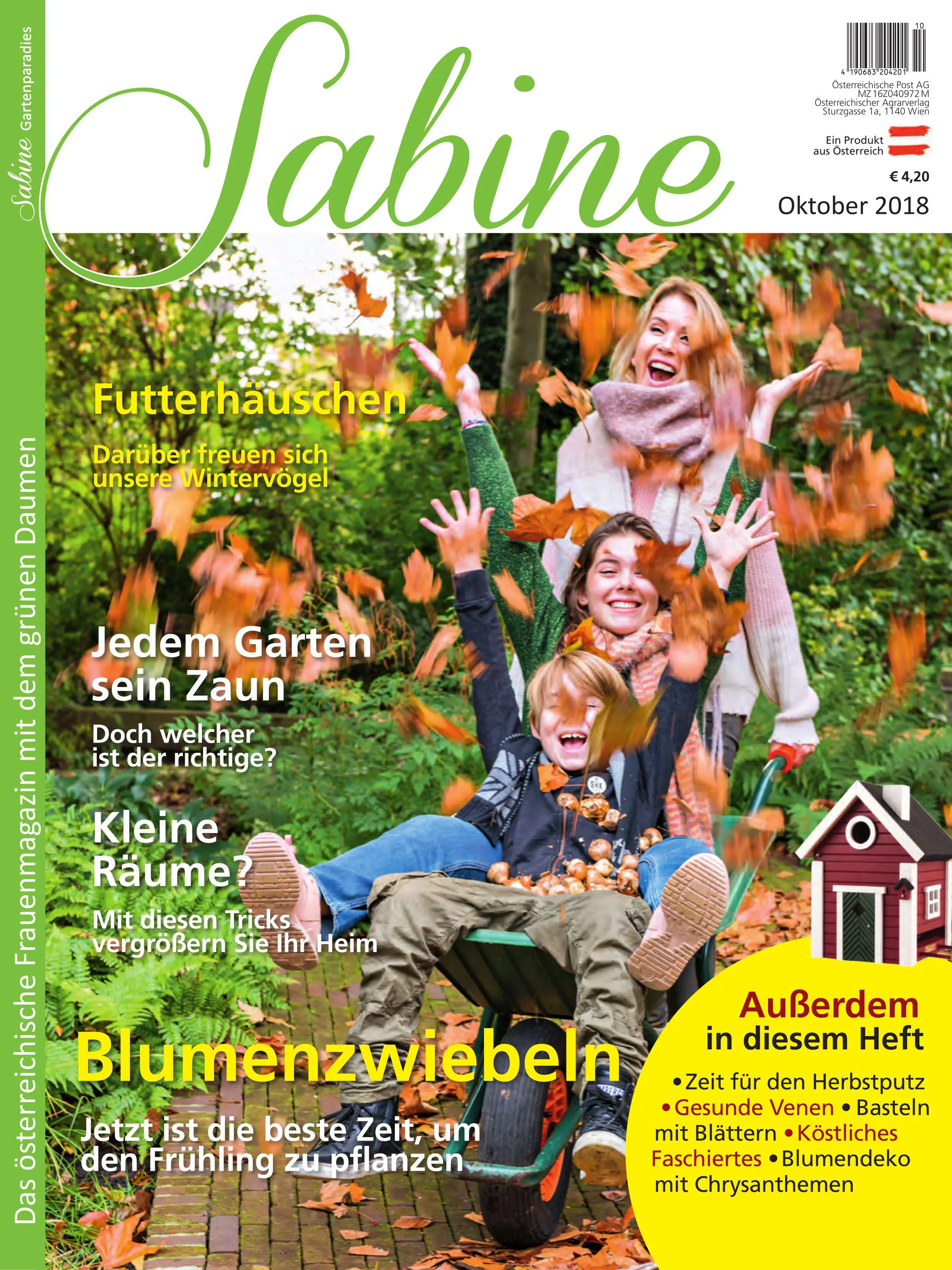 „Sabine“ ist das Frauenmagazin mit dem grünen Daumen. Neben dem Schwerpunkt Garten umfasst es auch die Themen Kochen & Genießen, Gesundheit & Naturapotheke sowie Urlaub & Reisen.