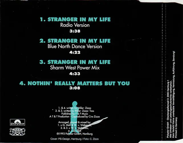 "Stranger In My Life" is a 1993 single by artist Grant Miller. This is a German CD5 released by Polydor and features three mixes of the song.